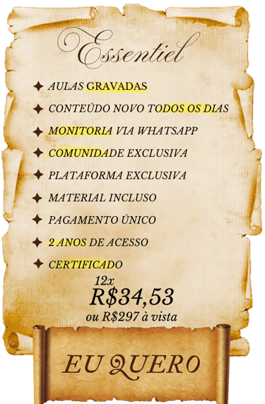 Acesse tudo dentro de uma plataforma exclusiva com design estilo Netflix, onde você encontrará as aulas, atividades, e materiais complementares de forma visual, organizada e inspiradora. Você pode rever as aulas quantas vezes quiser durante 2 anos de acesso completo.